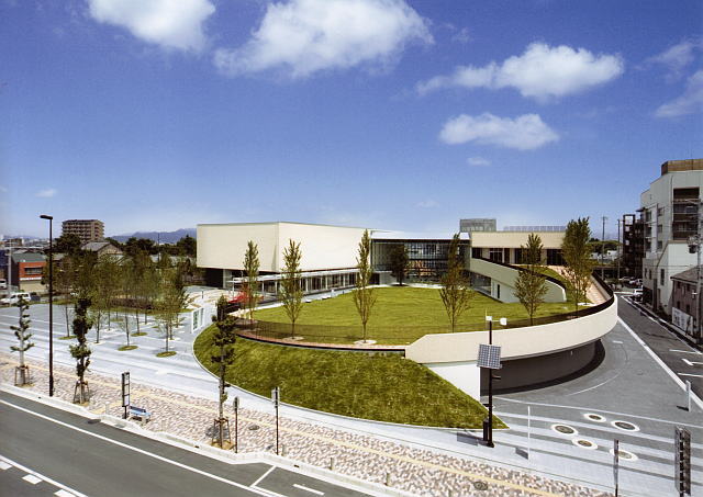 | 豊橋市の中心市街地に立つこの施設は、旧市民病院の跡地を、活気を失った市街地の活性化と、少子化対策施設として、幼児から小中学生の子供を中心とした幅広い層の人々が集う多世代交流の場として位置づけられ、地域に開かれた中心市街地の活性化に寄与する核施設として計画された建物。複合的施設でありながら十分に検討され明快なラインでエリア分けされ運営する側も、利用者にもわかりやすいプランとなっている。中央に様々なイベントに対応する内外一体な「ココニコ広場」を置き、静かな北側には、0歳から3歳の幼児と子育て初心者のパパママのコミュニティの場である「子育てゾーン」西側の県道側には、独自の空間を創出する「発見ゾーン」として、常に変わり続ける展示内容の更新にフレキシビリティを確保している。東側の中学生以上大人が対象の「体験ゾーン」はアクティブなスタジオ、ものづくり工房、キッチン工房、グループルーム、北側には山系を見渡す休憩コーナーを持ち、管理部門とともに多世代交流施設として機能している。 屋上緑化を始めとする積極的な敷地内緑化、太陽光発電等自然共生型デザインをしている。 春には西側県道側の土手のワイルドフラワーガーデンの花々が道ゆく人達を楽しませてくれます。 2008年8月1日オープンし昨年度の入場者数は年間約60万人(5万人/月)2年目の今年度も利用者数が9月まで4万人/月という数字に表れるように豊橋市民に認知され、リピーター率も高くなっている。建物の形状が街に向かって開き、高さも抑え敷地の高低差を利用した駐車場と2方向よりのエントランスがあり、誰もが入りやすく、利用し安い施設として運営されている。 前面に大きな芝生の広場・セットバックした前面広場に立つ若木の桂の木立群は10年後、20年後には大きく育ち、桂の森になる日が来れば、駅から5分で緑の森を持つ贅沢な街になることが期待される この建物は、持続可能な社会を目指すという時代の要請に対応し、地域と環境に根差したすぐれた建築作品といえる。 |